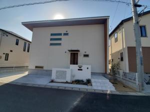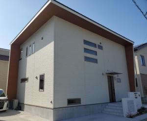 施工事例Works 木造住宅 千葉県八千代市 ベージュ系の外壁に木目調の軒天を組み合わせた、シンプルモダンな外観。 落ち着きのある色合いと直線的なフォルムが、洗練された印象を与える外観デザインです。 Galleryギャラリー